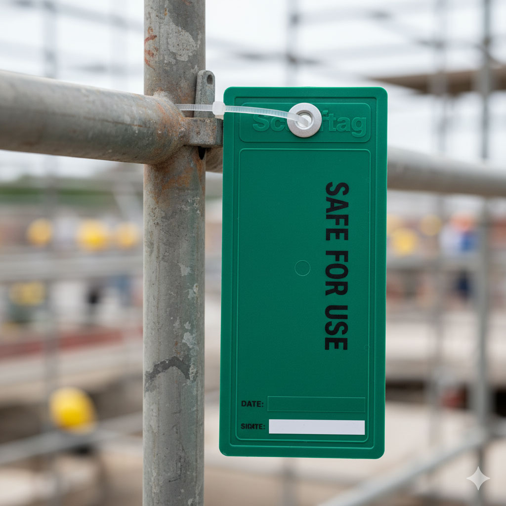 • تگ ایمنی (Scafftag): این یک کارت شناسایی برای داربست است که در ورودی آن نصب می‌شود و مثل چراغ راهنمایی عمل می‌کند: سبز (ایمن)، زرد (احتیاط) و قرمز (ممنوع).